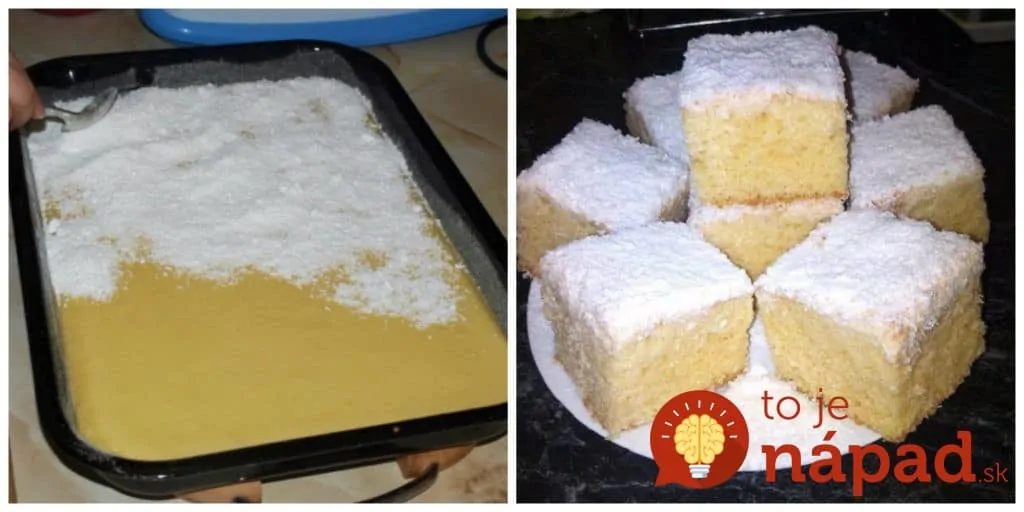 Jeden vanilkový cukor, 1/2 hrnčeka práškového cukru a kokos zmiešame, nasypeme na cesto a spoločne pečieme na 180 ° C. Po upečení zalejeme šľahačkou.