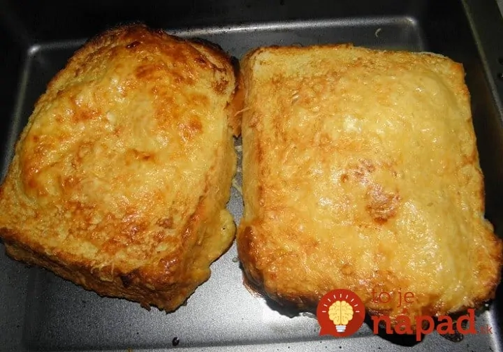 Ak chcete, môžete takto chlebík opiecť z oboch strán (teda zmes nanesieme aj na druhú stranu a tiež pečiete dozlatista).