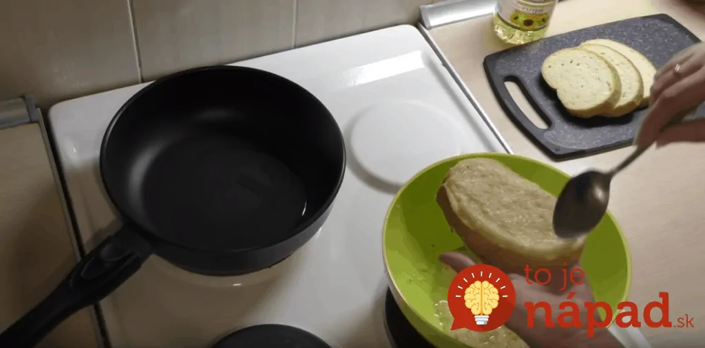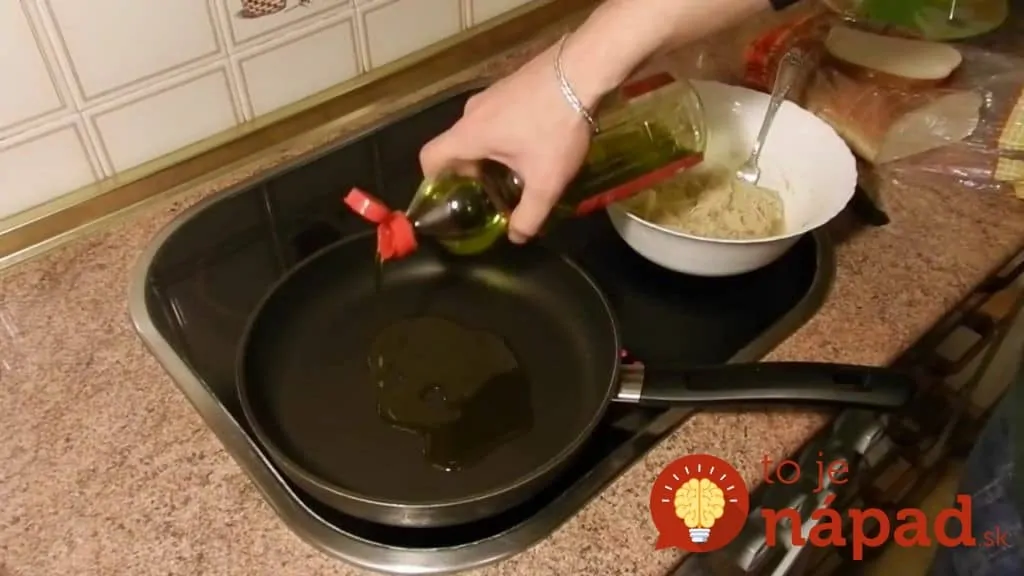 Touto stranou pokladáme na rozpálenú panvicu s rozpáleným olejom.