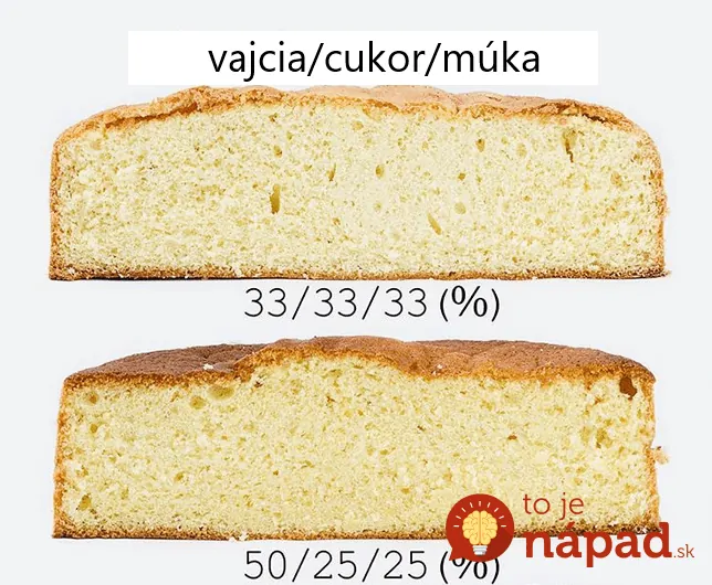 Ak vajcia šľaháte dostatočne dlho, cesto bude vzdušné a nadýchané. Hoci po upečení ešte trochu sadne, stále sa bude javiť ako vláčne. Ak však vajcia vyšľaháte len krátko, pravdepodobne vám po upečení vznikne tzv. kráter.