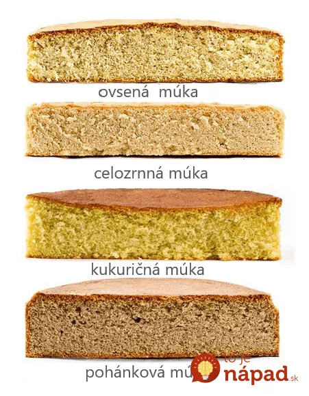 1. Ovsená múka – Korpus z tejto múky je hutnejší a nižší a má aj špecifickú vôňu a chuť. Korpus je vlhkejší. Vhodná kombinácia s mliečnym krémom a krémom z kondenzovaného mlieka.