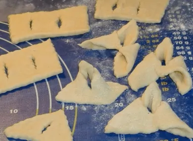 Rozvaľkáme a ostrôžkou pokrájame na obdĺžniky.