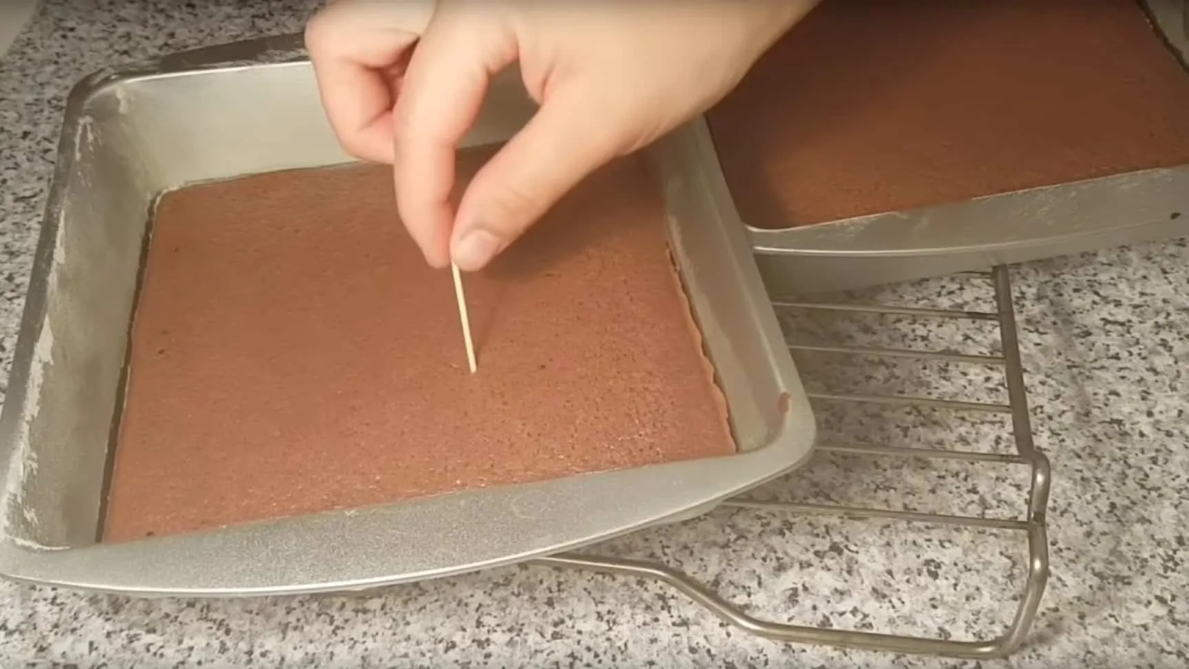 V mise si vyšľaháme vajcia s cukrom do peny. Do jogurtu alebo kefíru pridáme jedlú sódu a dobre rozmiešame. Necháme chvíľku stáť, aby kefír (jogurt) mierne zväčšil svoj objem. Potom pridáme do vajcovej peny a primiešame tiež rozpustené maslo. Hrozienka nakrájame na menšie kúsky a pridáme do hmoty. Nakoniec primiešame preosiatu múku a kakao. Dve formy si vymastíme a vysypeme múkou. Vlejeme cesto a dáme piecť pri teplote 180 stupňov asi na 15 – 20 minút.