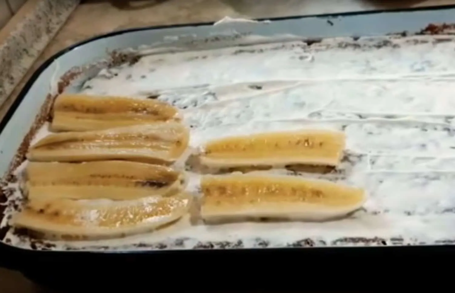 Na banány navrstvite krém a rovnomerne rozotrite.