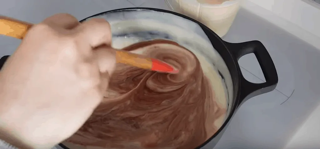 Rozdelíme si krém na dve polovice a v jednej rozpustíme čokoládu.