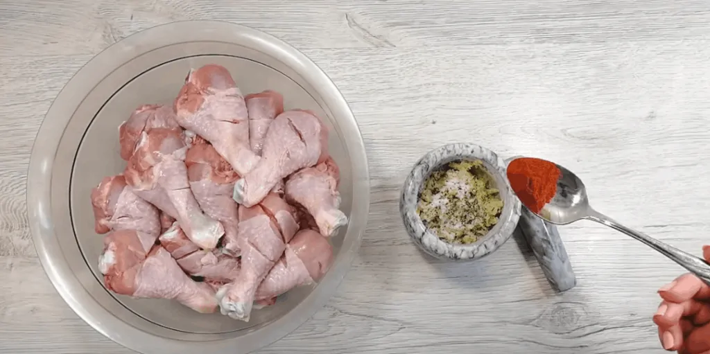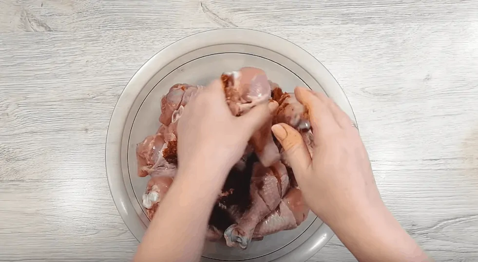 Dôkladne túto zmes vmiešame do stehienok a necháme takto marinovať pol hodinu.