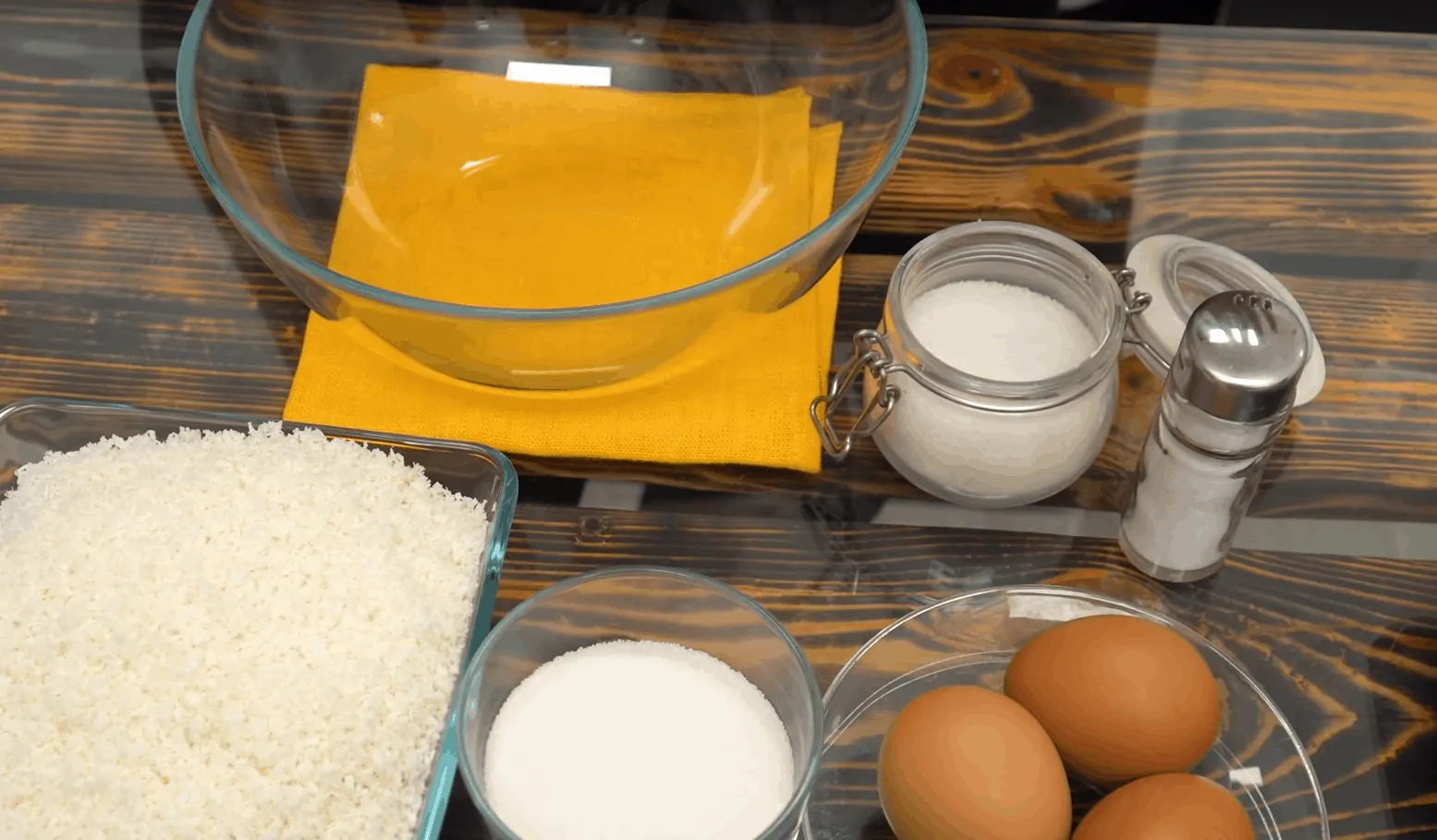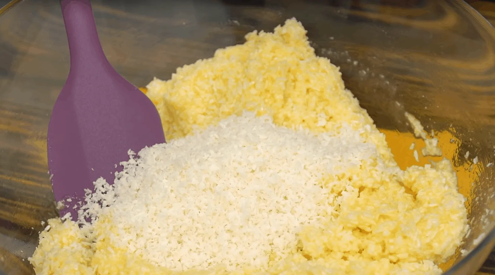 Rozohrejeme si rúru na 160 stupňov a pustíme sa do prípravy sušienok. Do misky si dáme všetok cukor, pridáme vajíčka a vyšľaháme metličkou. Postupne pridávame kokos a zašľahávame do hmoty. Hmota by mala byť hustejšia, aby sa dali sformovať guľôčky.