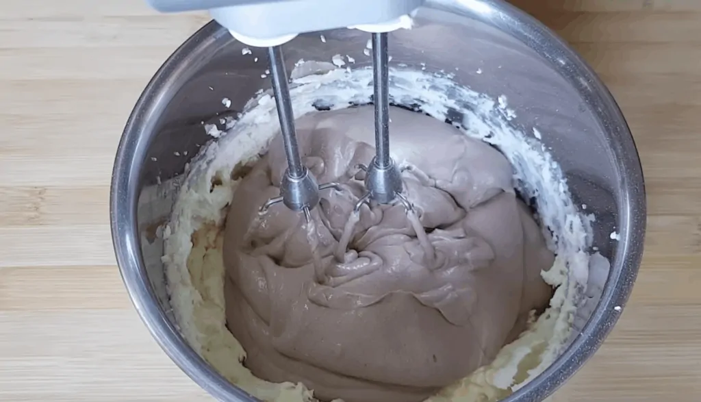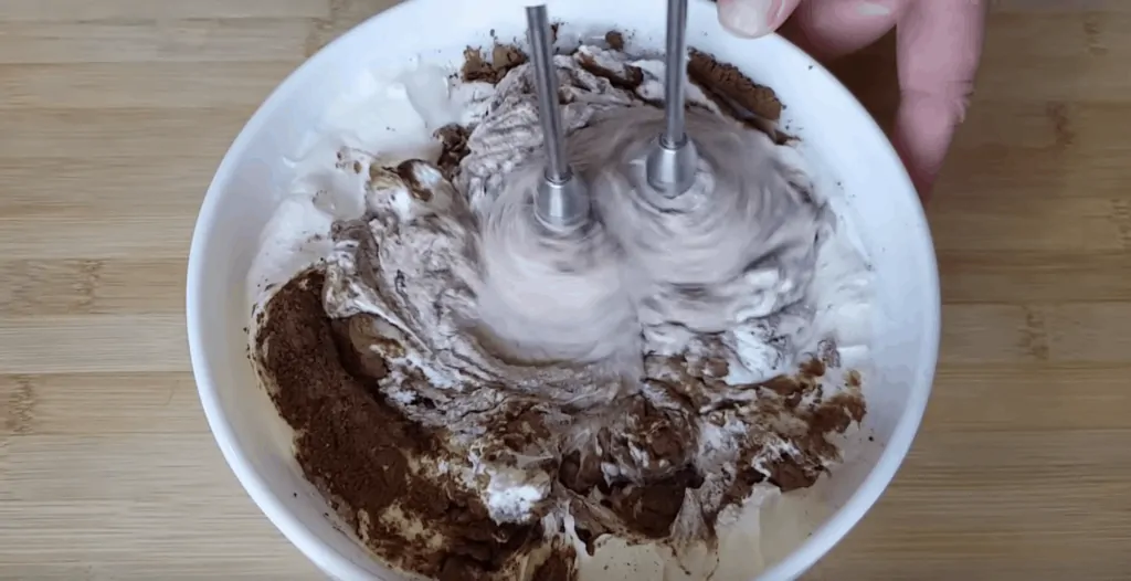 Pridáme cappuccino, smotanu a vymiešame. Nakoniec zmiešame s maslovou hmotou a vyšľaháme na jednotný krém.