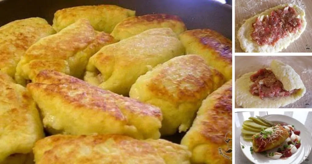 Zo zemiakového cesta oddeľujeme menšie kúsky, z ktorých vytvárame jednotlivé placky (hrubé 1-1,5 cm) a plníme mäsom. Cesto zrolujeme a okraje zatlačíme, aby náplň ostala vo vnútri.