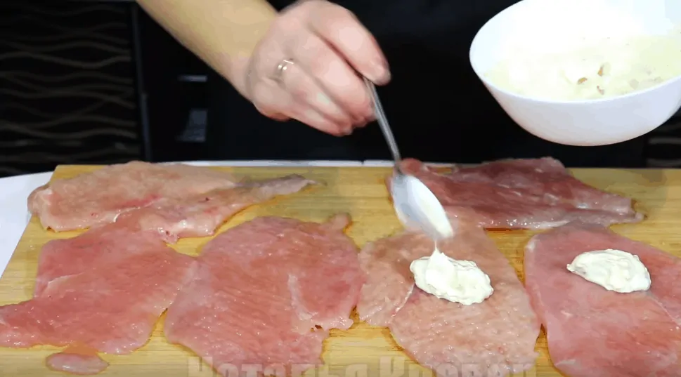 Mäso ochutíme soľou a korením. Pridáme 2-3 lyžice kyslej smotany a premiešame. Mäso bude vďaka pridanej smotane úžasne šťavnaté.