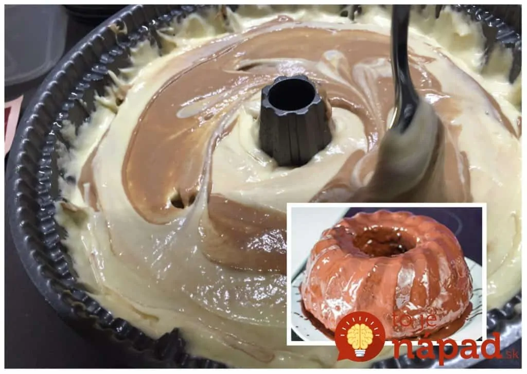 Vajcia s cukrom ušľaháme do peny, pridáme smotanu, vanilkový cukor a nakoniec aj múku spolu s práškom do pečiva. Vymiešame jednotné hladké cesto. Formu na bábovku vymastíme tukom a vysypeme múkou. Do formy navrstvíme ½ cesta a do zvyšného vmiešame kakao. Tmavé cesto navrstvíme na svetlé a šup do vyhriatej rúry. Pečieme pri teplote 180 stupňov 35 minút.