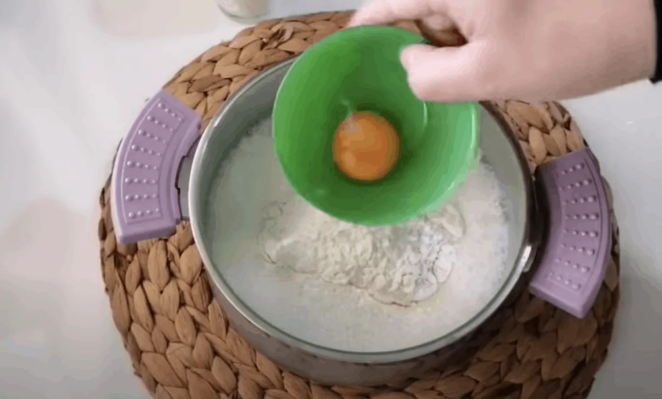 Najskôr si pripravíme cesto. Vajcia ušľaháme do peny s cukrom. Postupne pridáme tekuté prísady – olej a vodu a nakoniec do hmoty vmiešame kakao a múku spolu s práškom do pečiva.