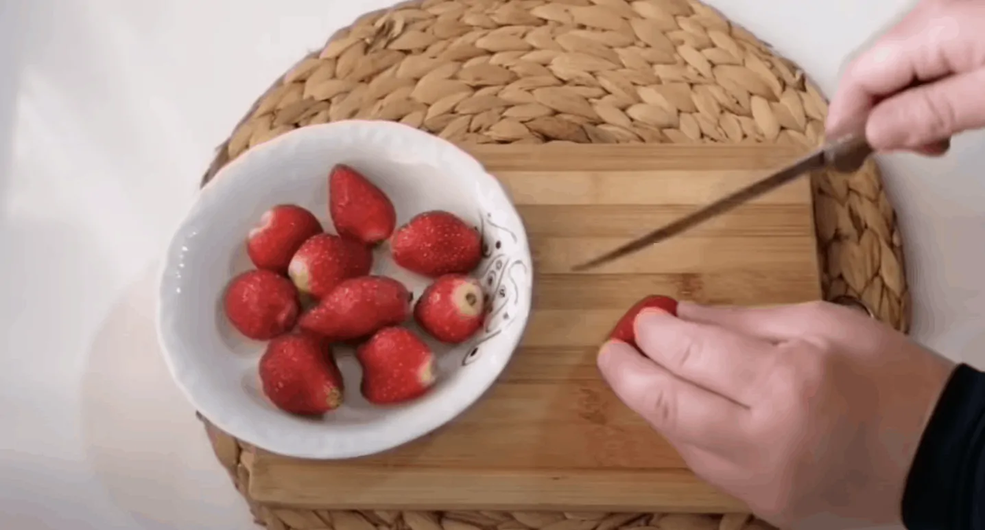 Necháme vychladnúť a zatiaľ si nakrájame jahody.