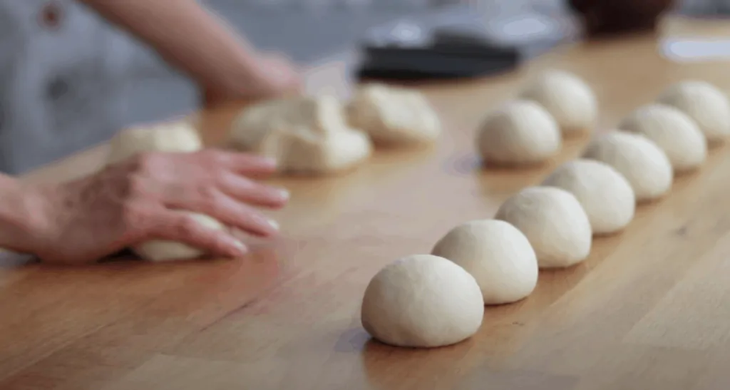 Keď sú loptičky vykysnuté, každú rozvaľkáme na dĺžku asi 20 cm.