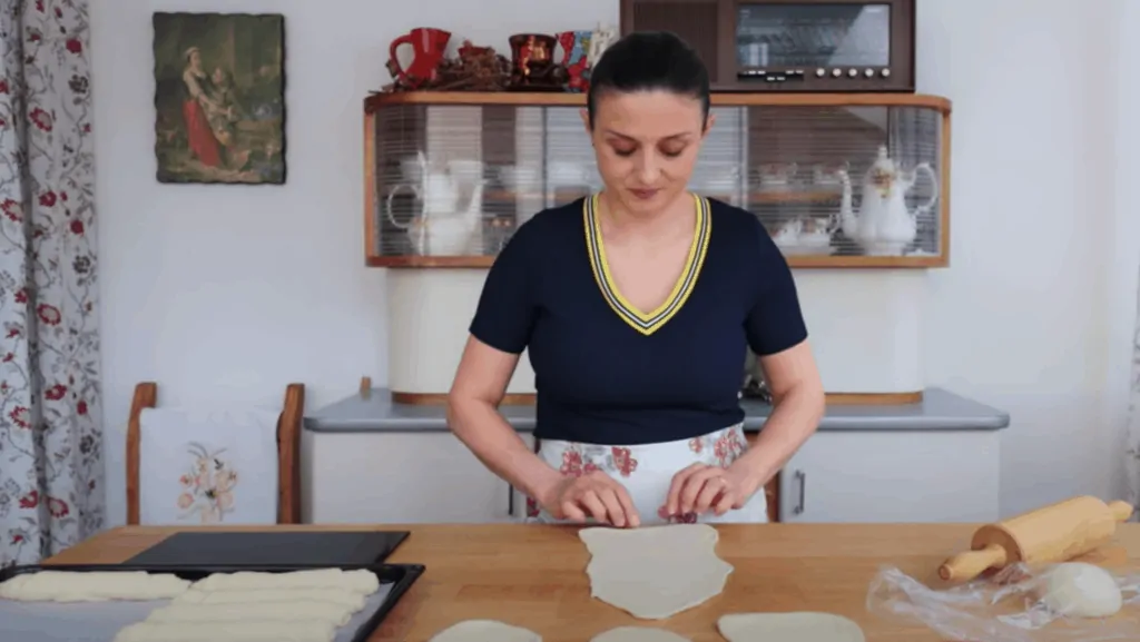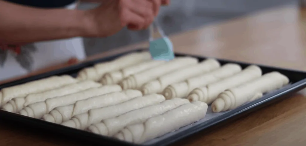 Každú loptičku rozvaľkáme a následne zrolujeme do tvaru rožteka.