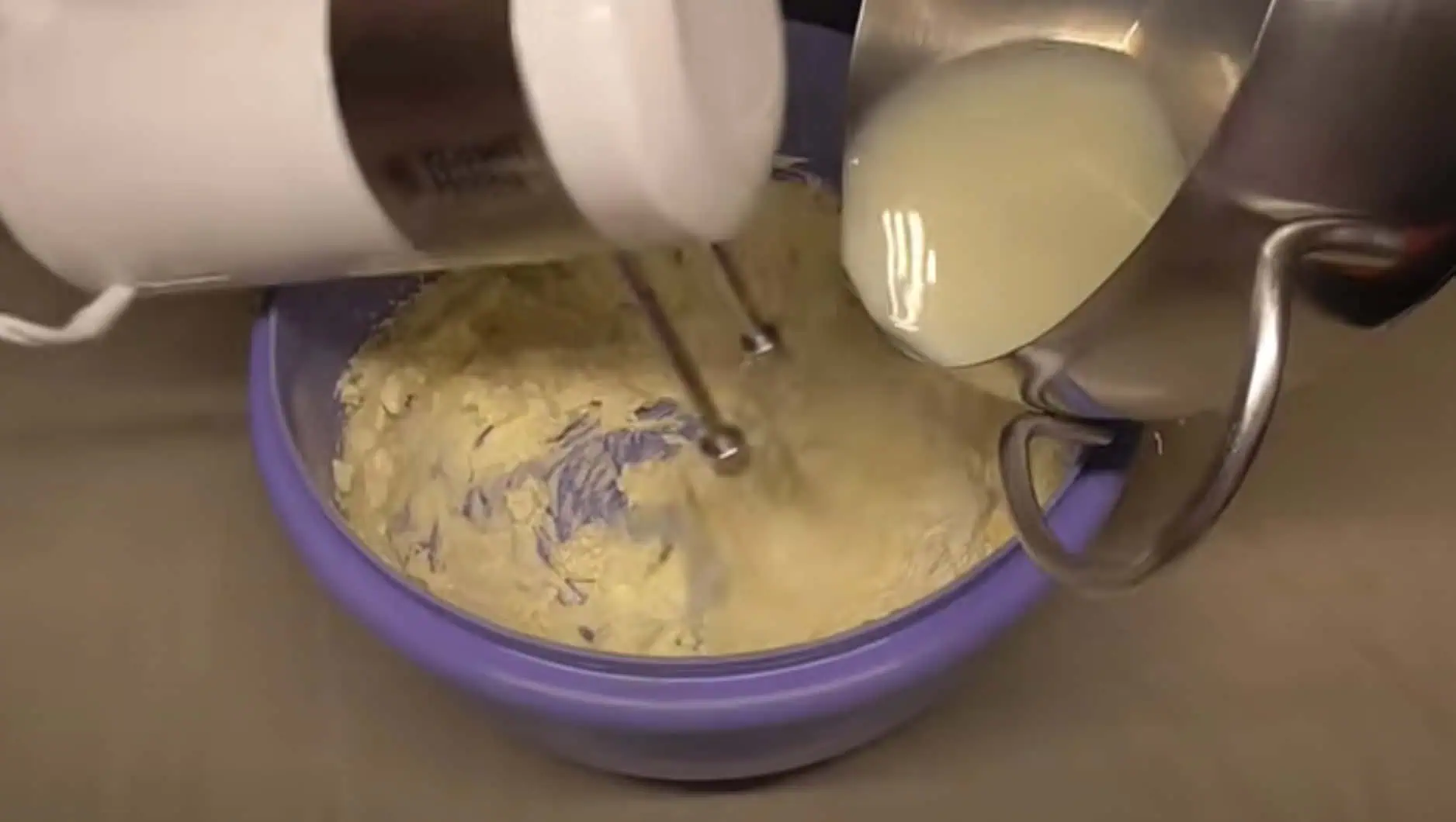 Keď je hmota dobre vymiešaná, zašľahávame postupne sušené mlieko.