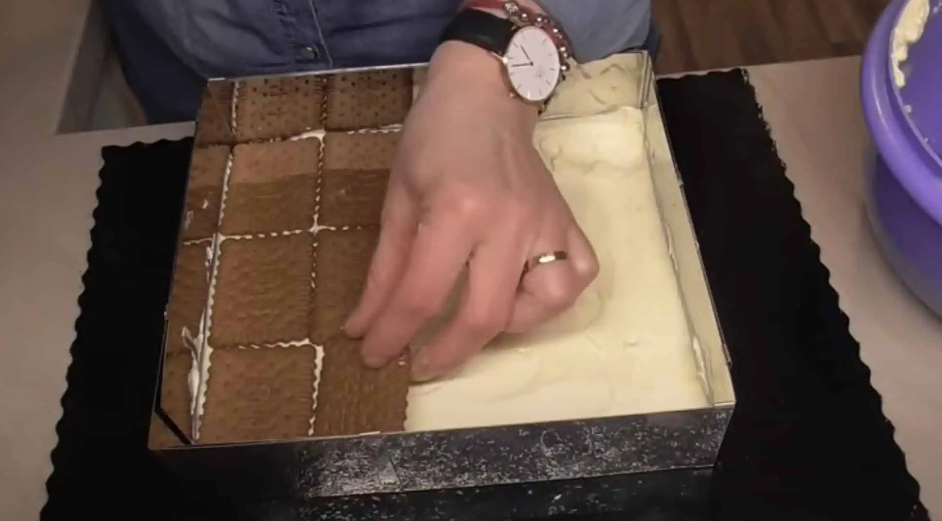 Opať naukladajte sušienky a navrstvite ďalšiu vrstvu krému.