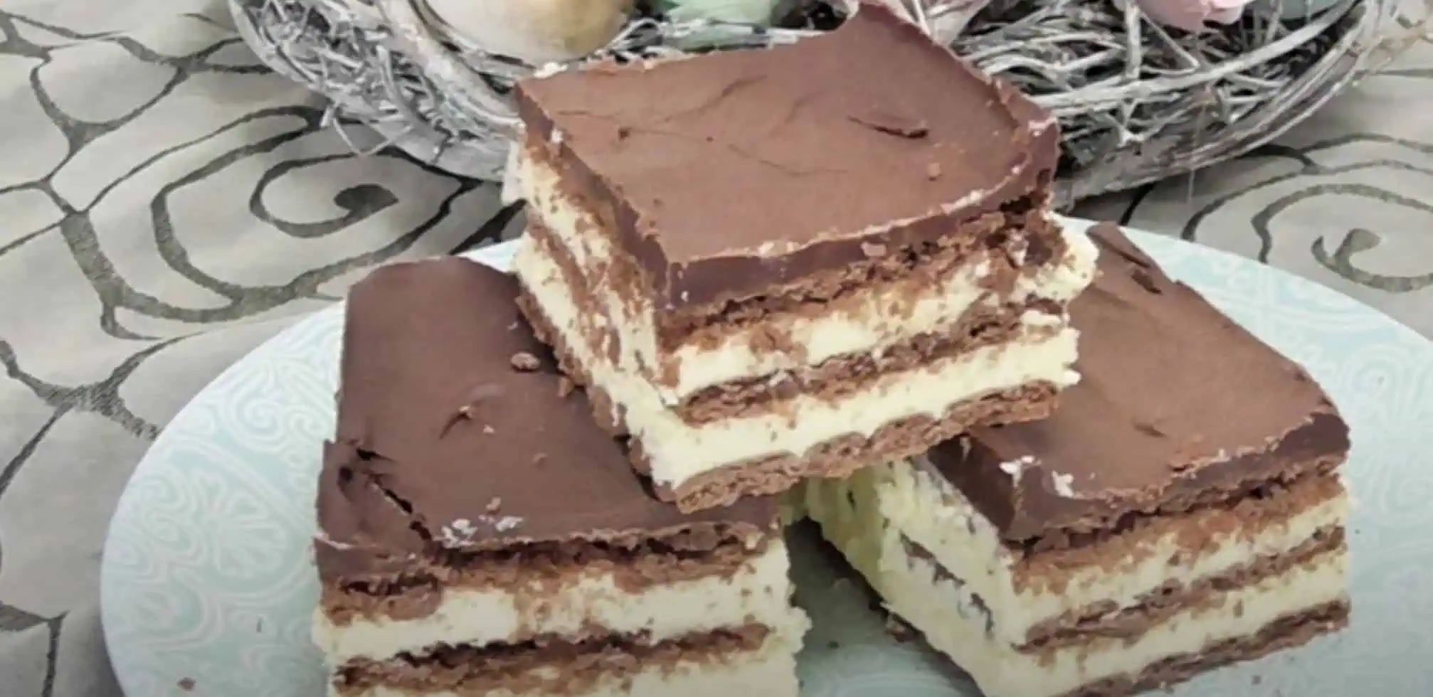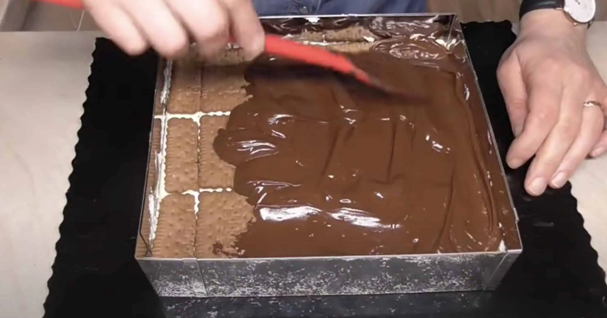 Posledná vrstva bude sušienková a tú potom polejte čokoládovou polevou.