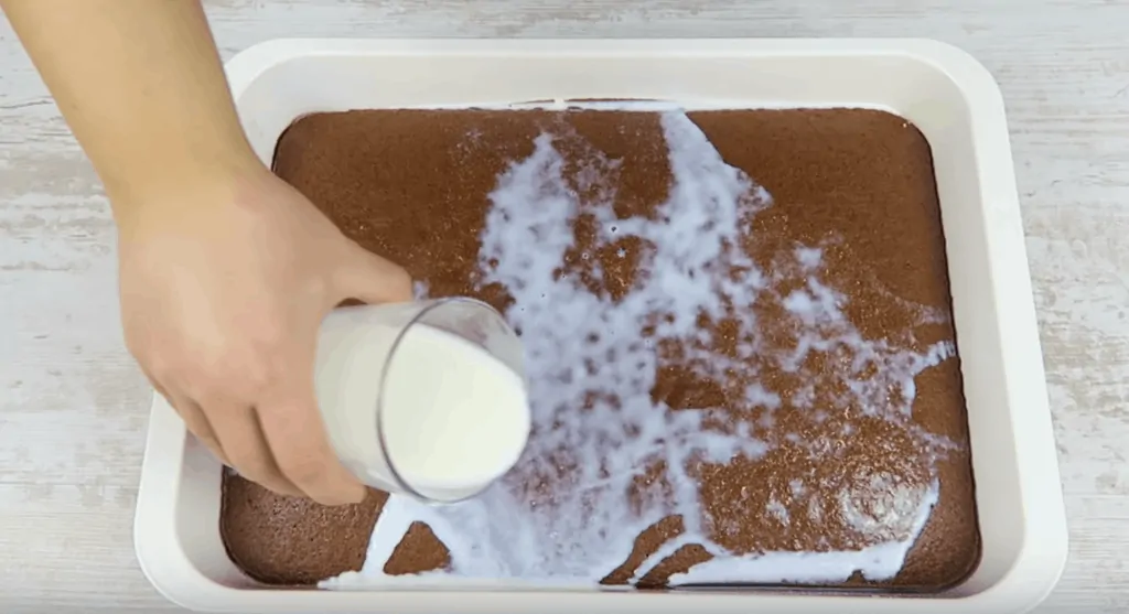 Upečené cesto prelejme mliekom.