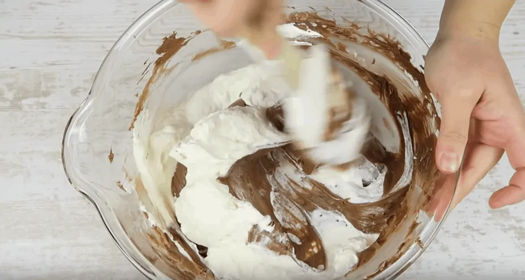 Smotanu si vyšľaháme zvlášť so stužovačmi a vmiešame do Nutellovej zmesi.