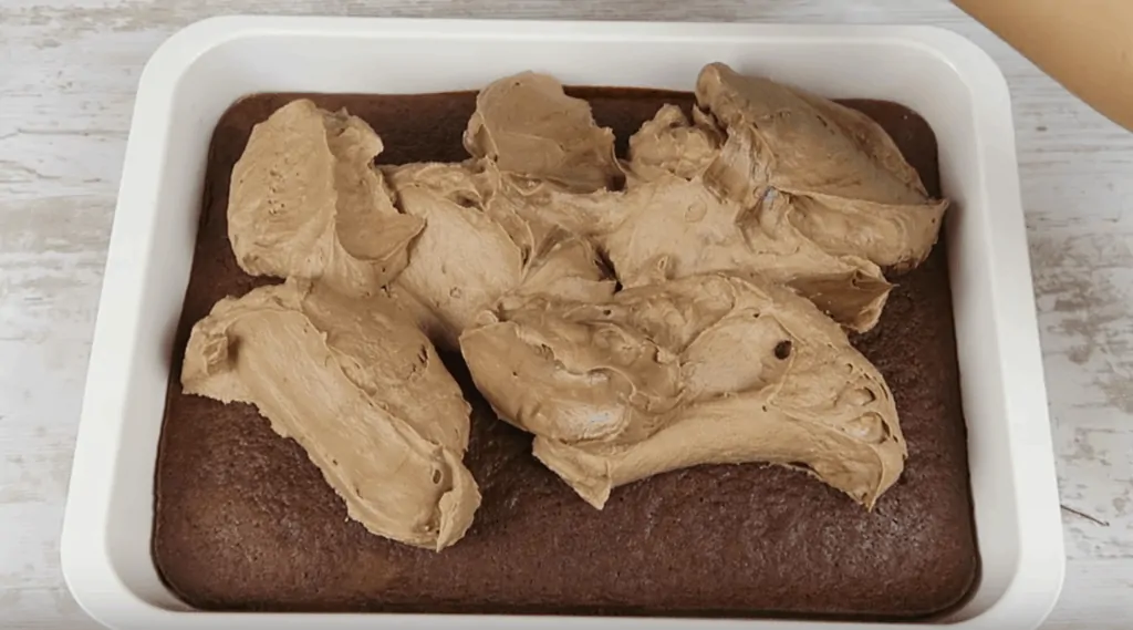 Krém navrstvíme na cesto a uhladíme.