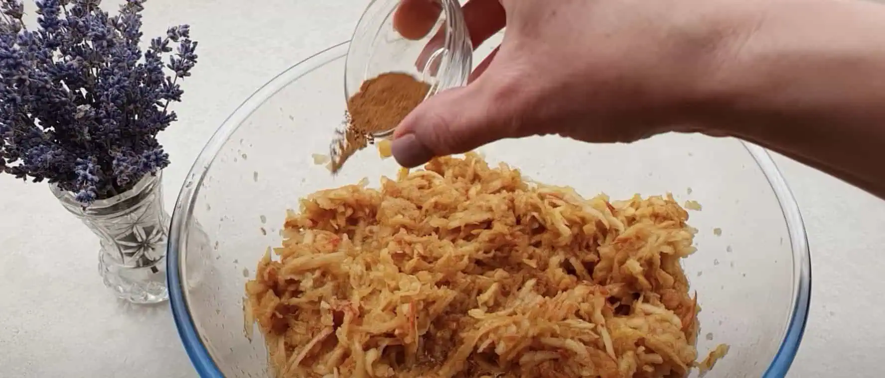 Jablká nastrúhame a zmiešame s citrónovou šťavou a škoricou, ak chcete, pridajte aj vanilkový cukor.