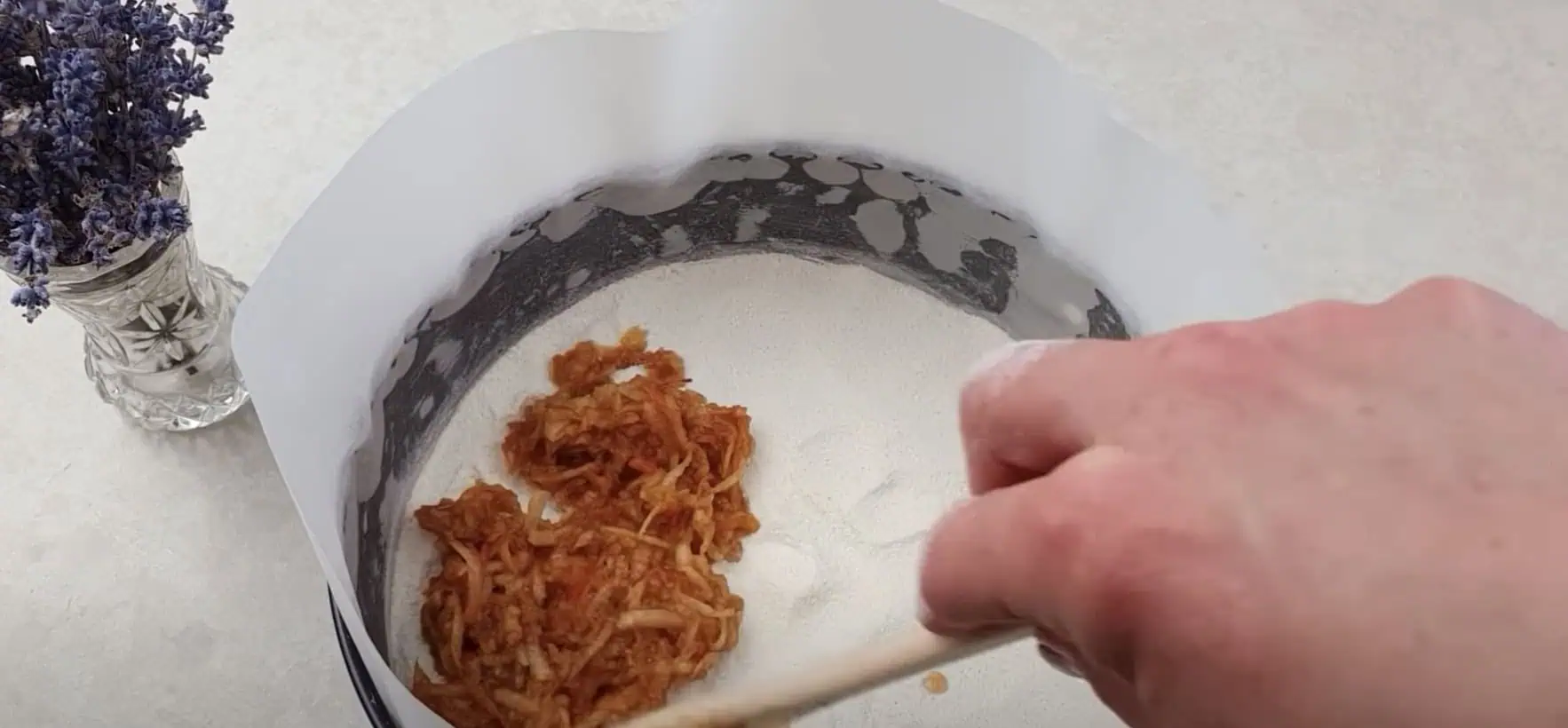 Všetky prísady (okrem jabĺk) zmiešame v miske.