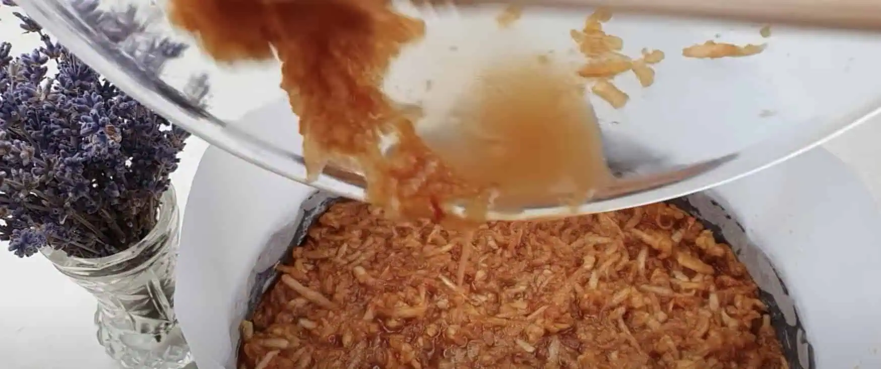 Pokračujeme vo vrstvení – jablká pridajte aj so šťavou.