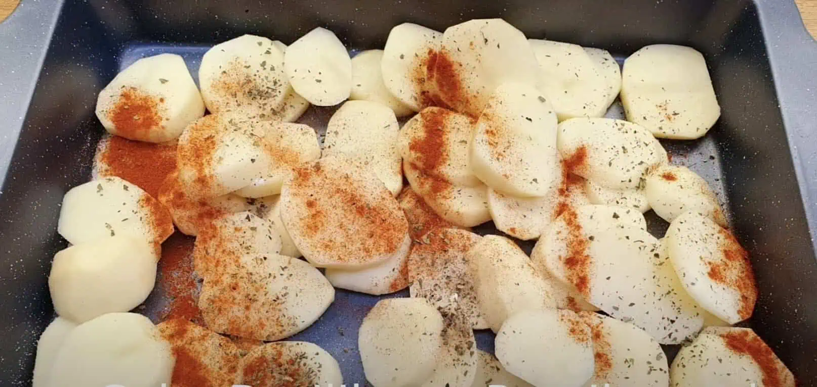 Zemiaky si očistíme, nakrájame a ochutíme soľou, korením a bazalkou.