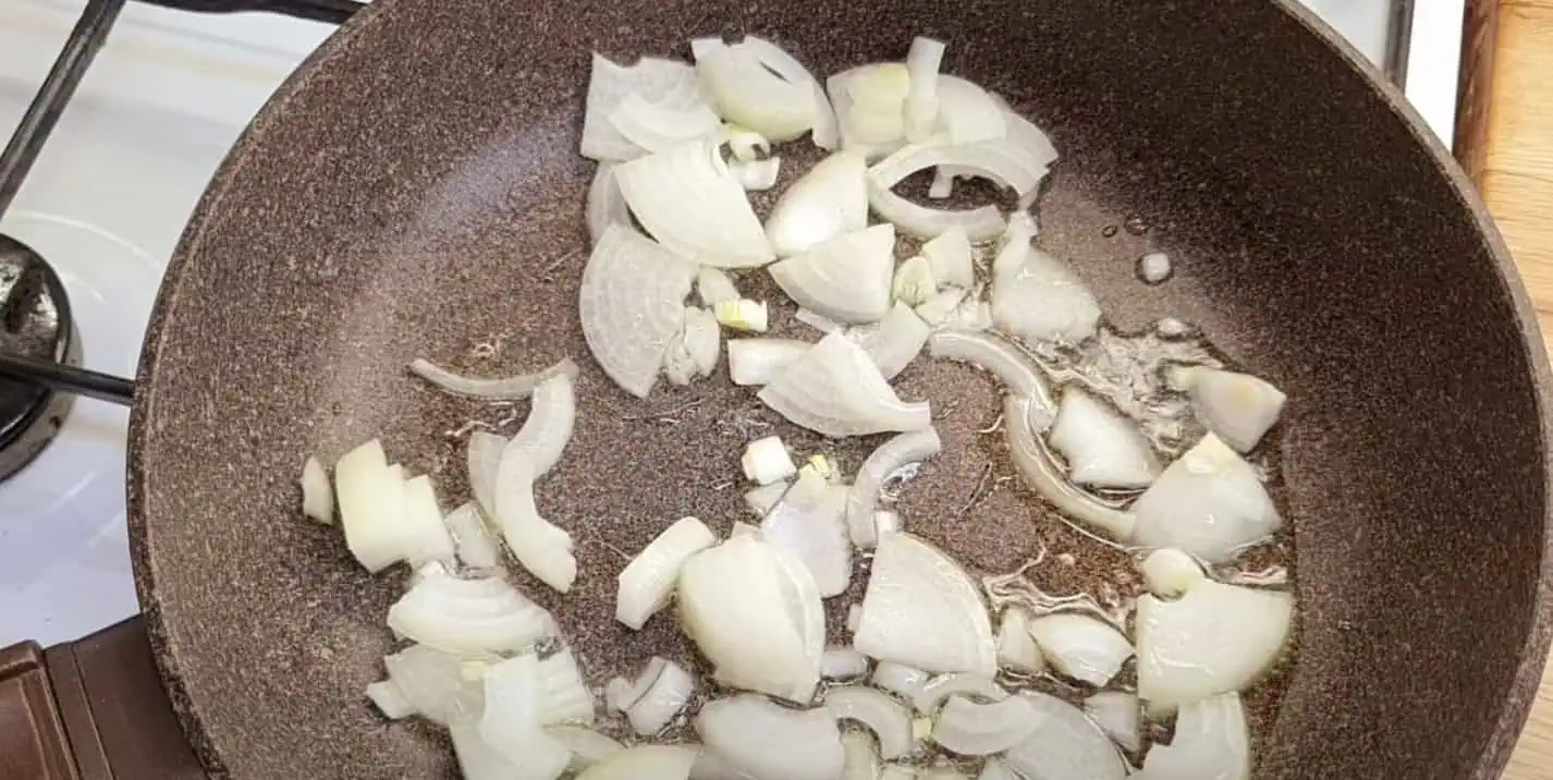 Nakrájame 1 cibuľu a osmažíme ju na panvici s olejom.