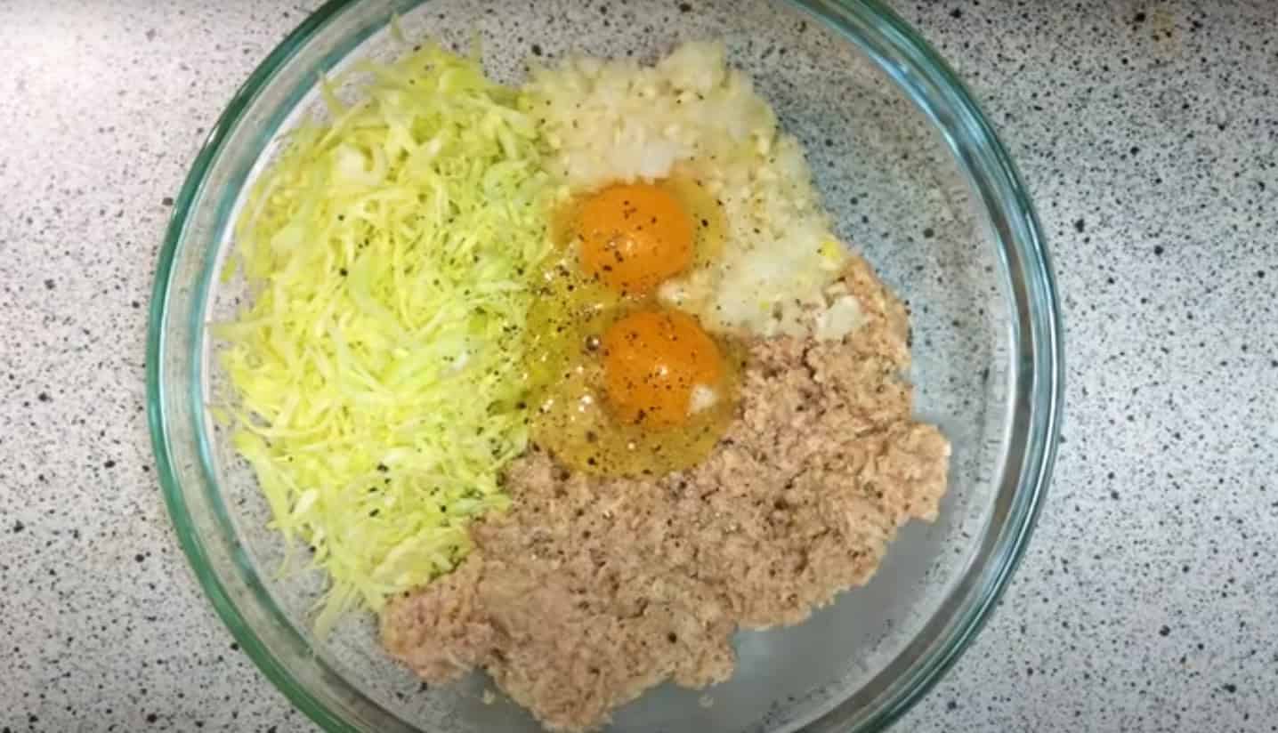 Preložíme si ju do väčšej misy, pridáme mleté mäso, rozmixovanú cibuľu s cesnakom, vajíčka, osolíme, okoreníme a dôkladne premiešame.