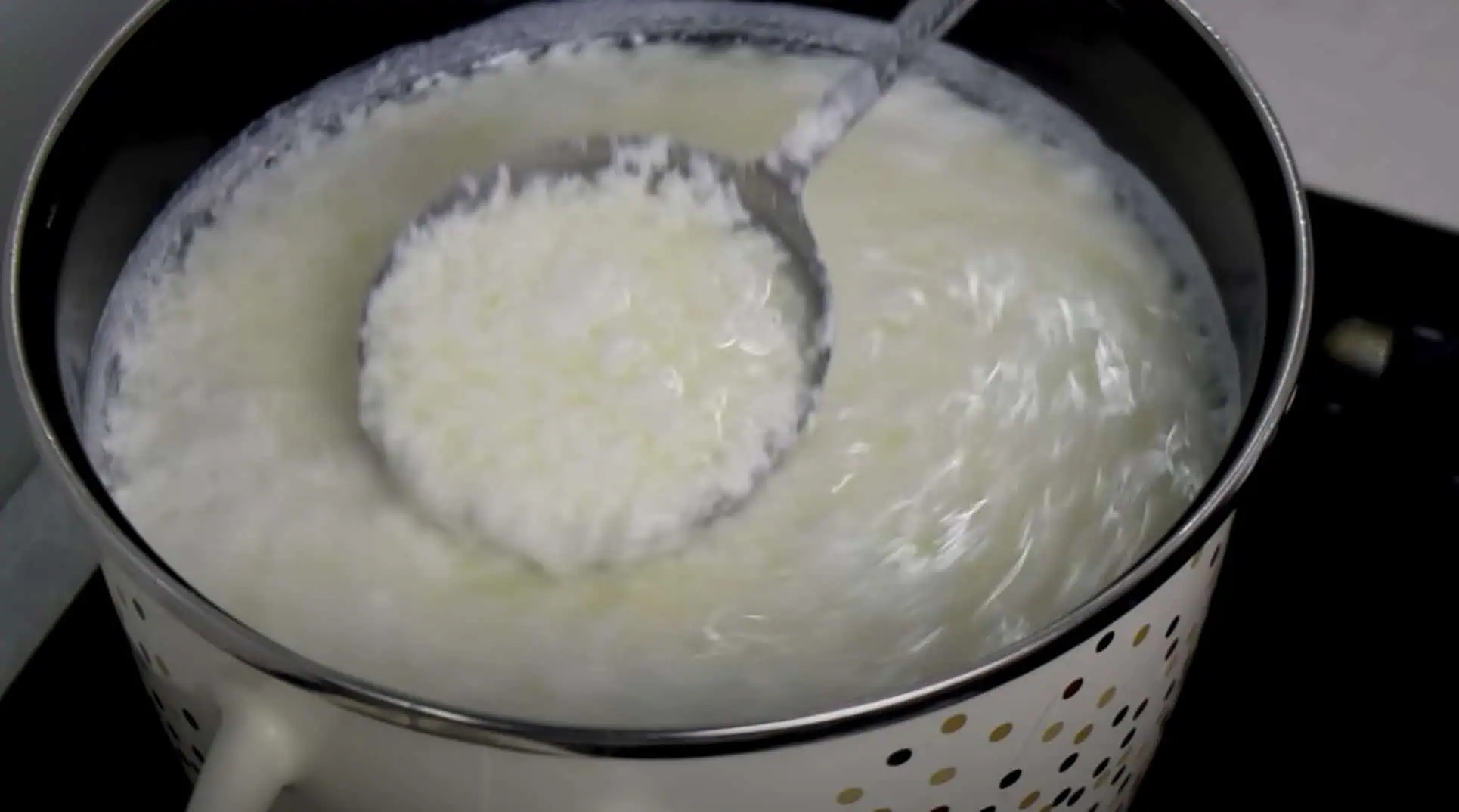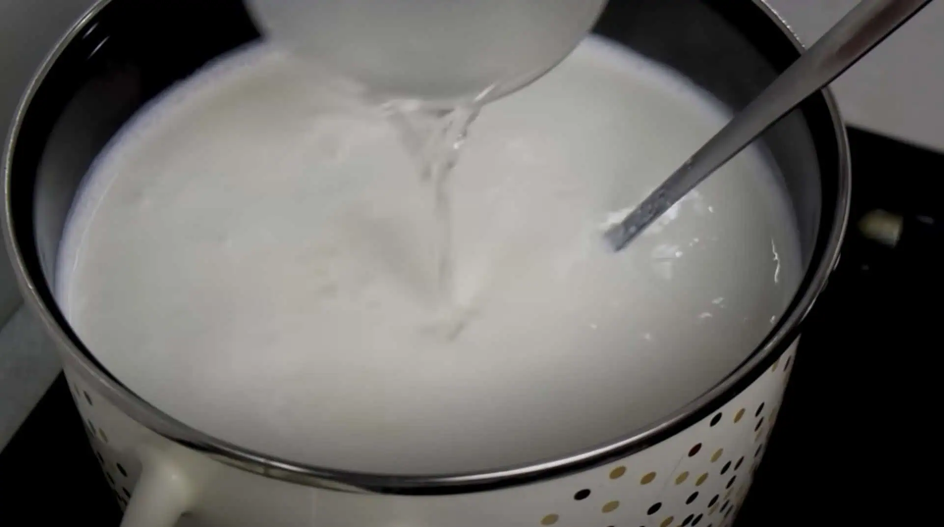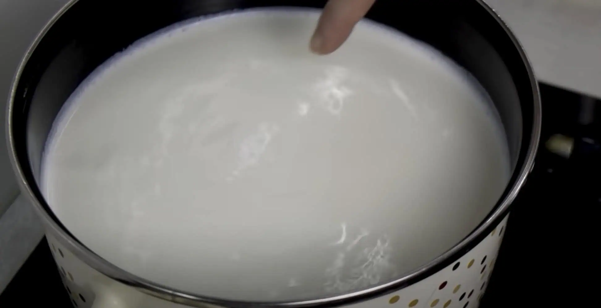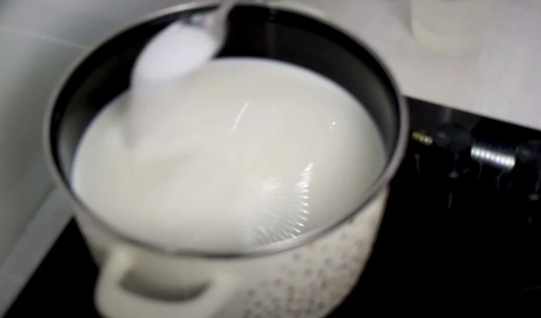 Mlieko sa ale nesmie variť, keď sa objavia bubliny vypneme plameň.
