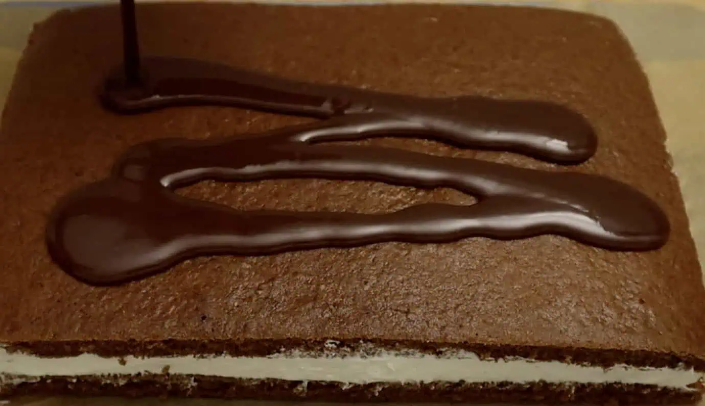 Jednu upečenú vychladnutú placku necháme na plechu a pokvapkáme silnou kávou, potrieme krémom, uložíme druhú placku, ktorú tiež pokvapkáme silnou kávou a prelejeme polevou.