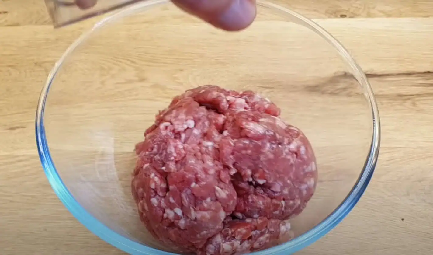 Mleté mäso vložíme do misy, osolíme.