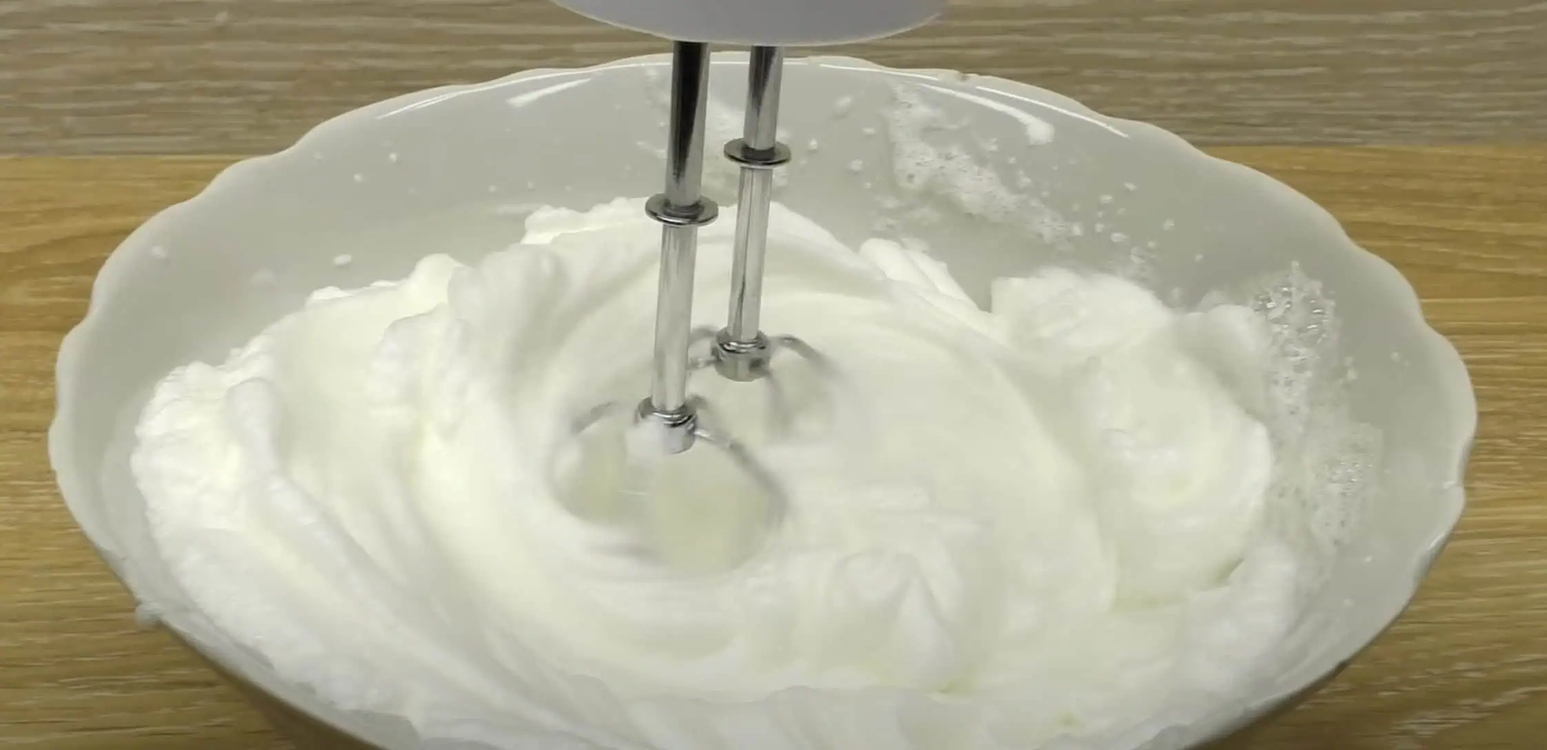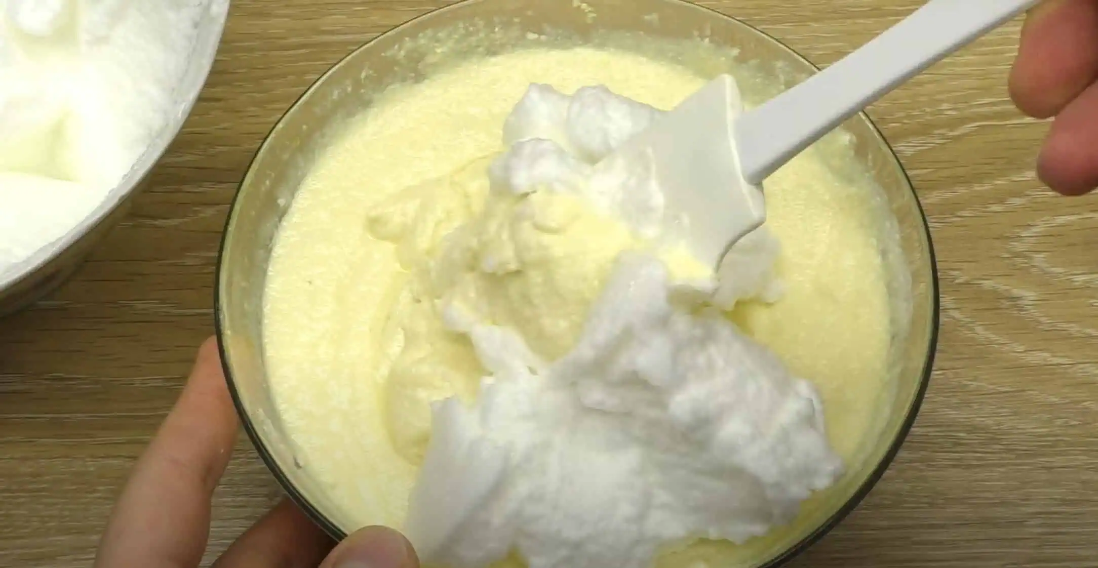 Sneh ručne vmiešame do žĺtkovej hmoty.