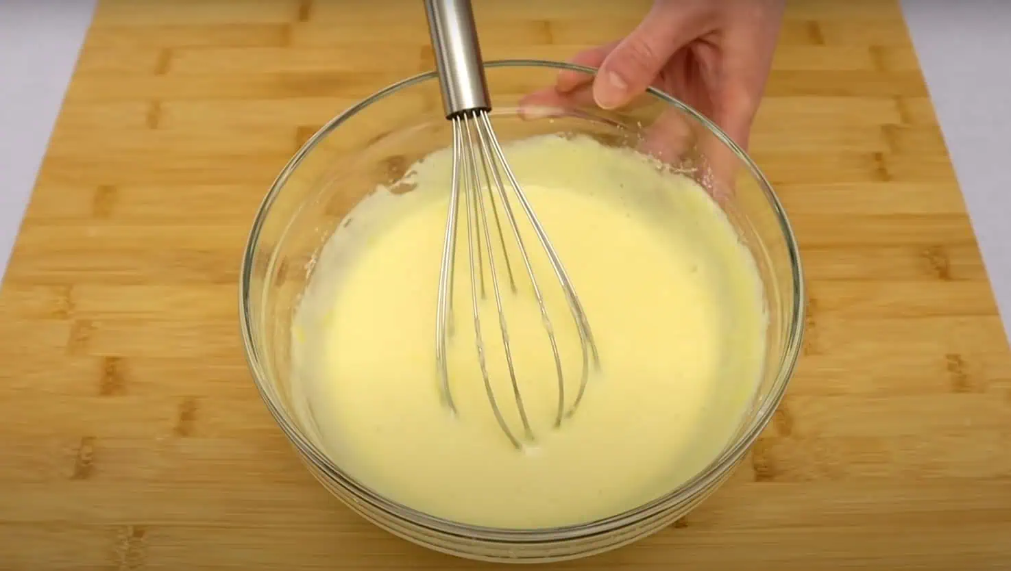 Do misky si rozbijeme vajíčka, pridáme cukor a vyšľaháme do peny.