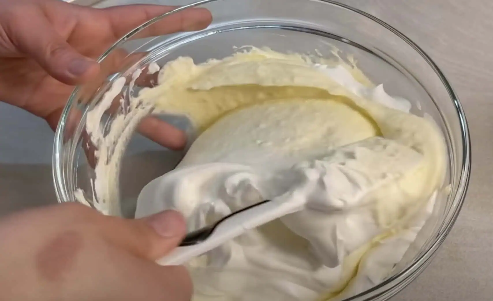 Smotanu na šľahanie vyšľaháme a spojíme s vychladnutým pudingom.