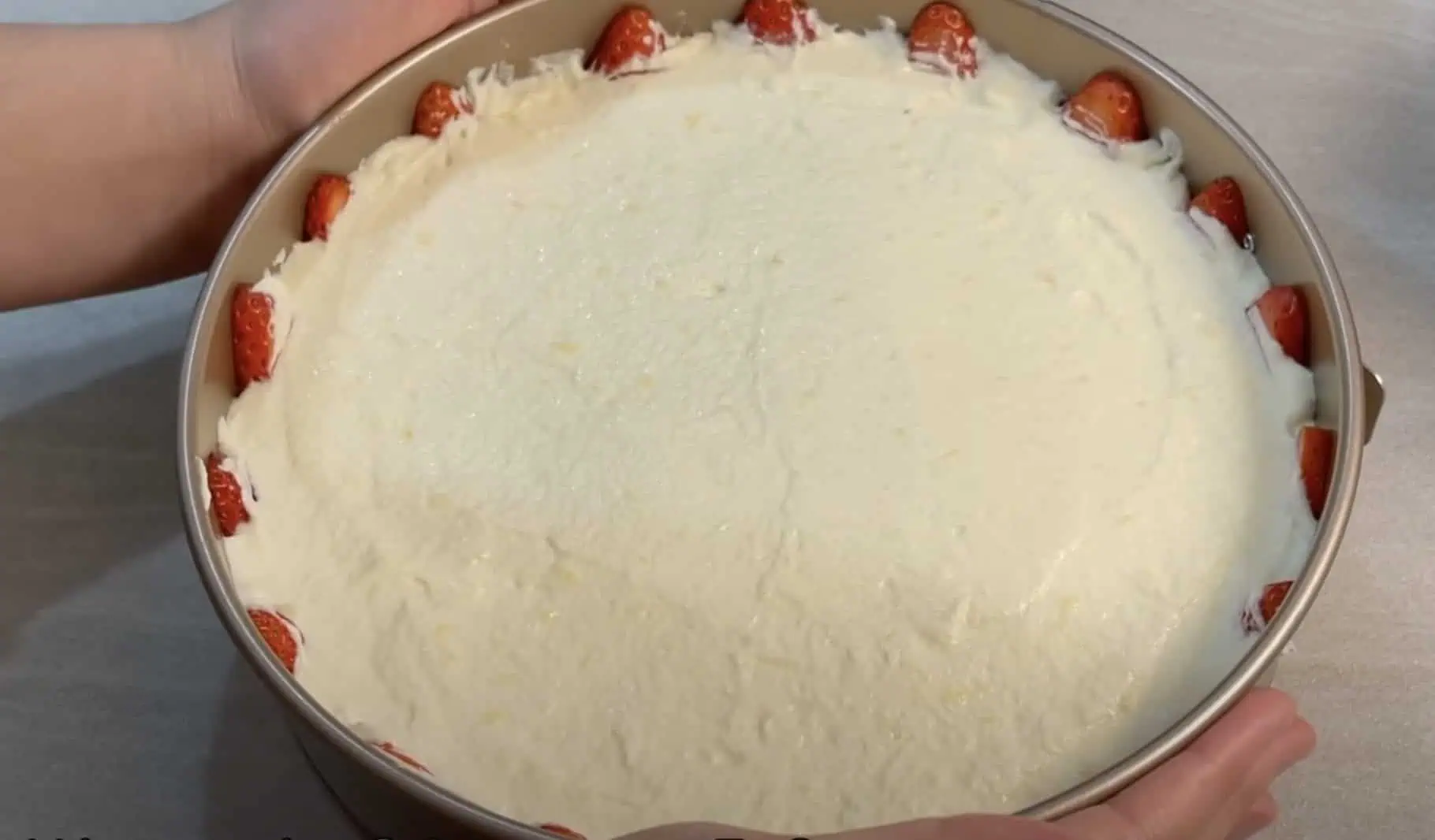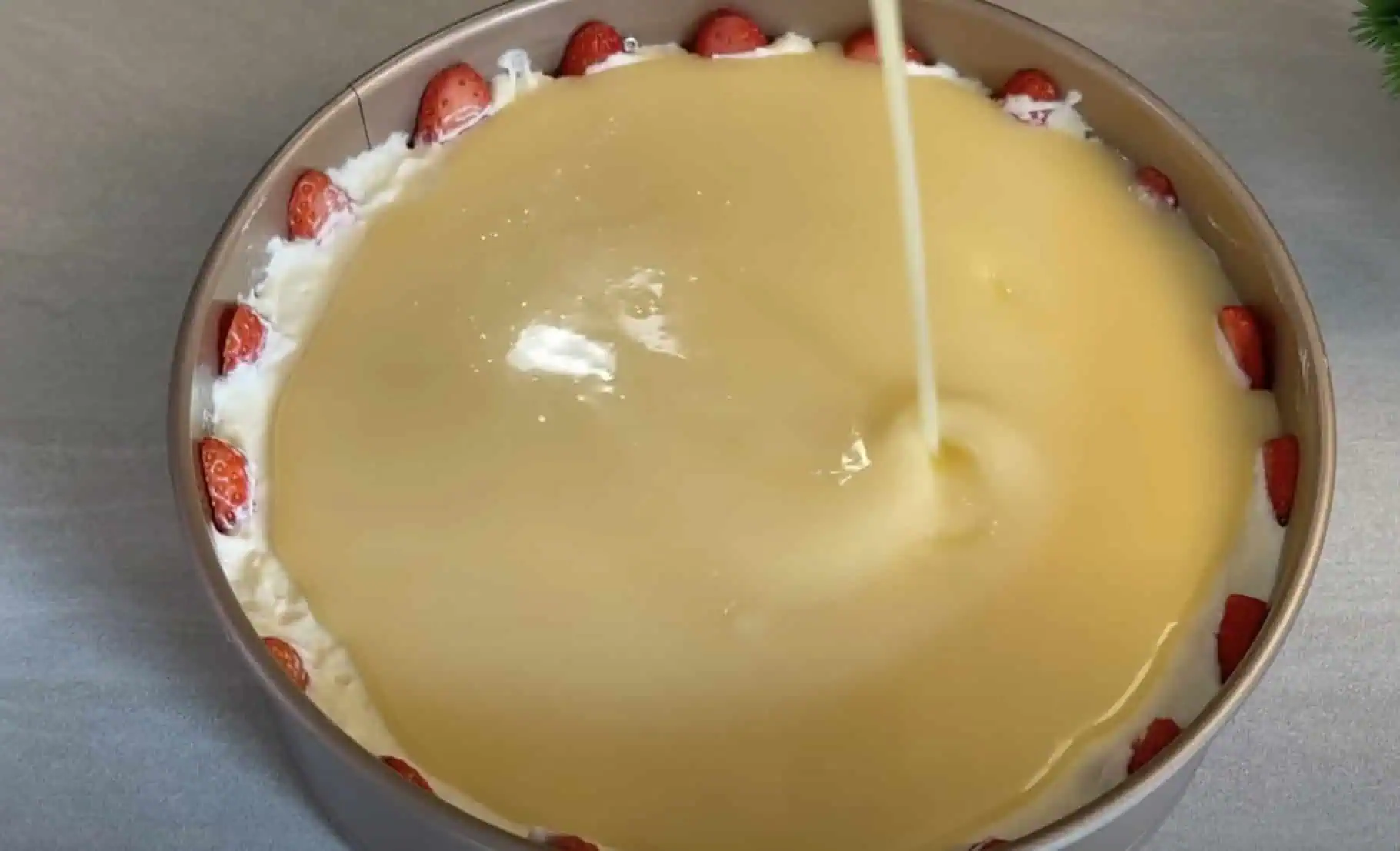 Nalejeme na vrch dezertu a dozdobíme jahodami.