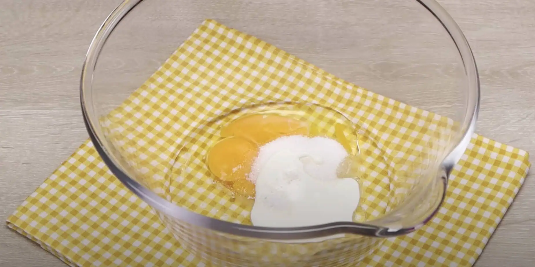 V miske zmiešame vajcia s cukrom, olejom a kyslou smotanou.