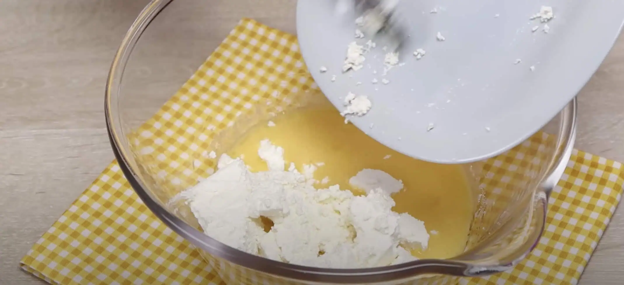 Pridáme tvaroh a zamiešame.