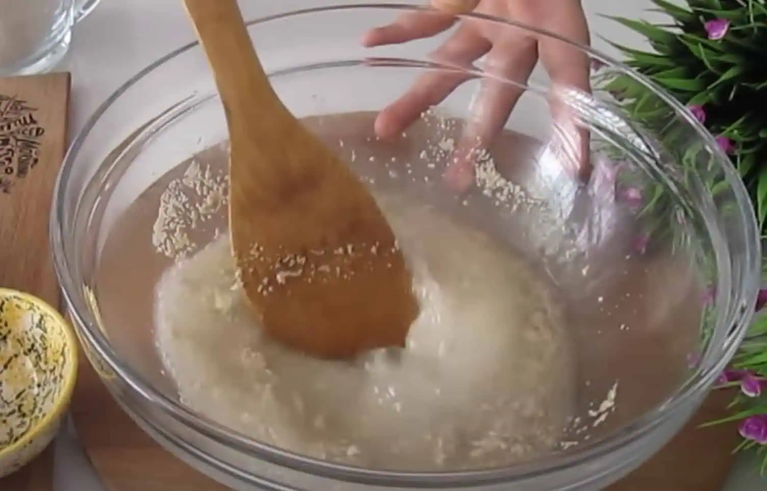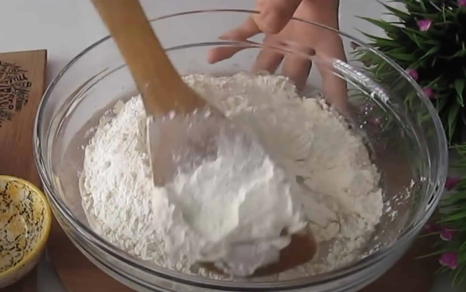 Pridáme múku, soľ a dobre premiešame – najskôr vareškou, potom rukami.