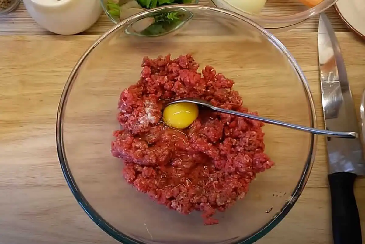 1. Do hrnca si dáme variť vodu a medzitým si zmiešame mäso so soľou, korením a vajíčkom.