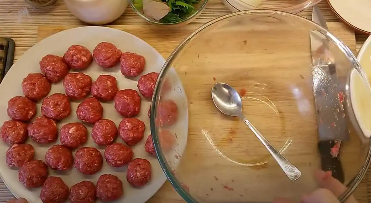 3. Vlhkými rukami začneme tvarovať guľky pomocou lyžice.