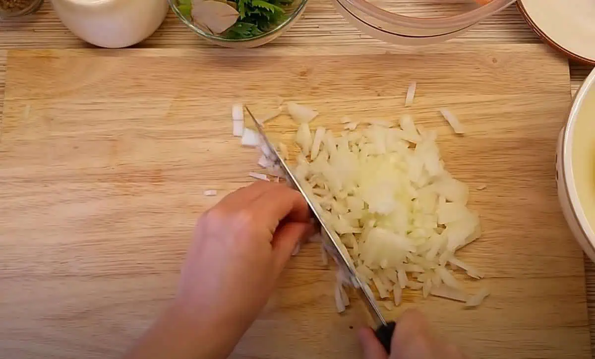 Cibuľu nakrájame a pridáme ju do hrnca s vriacou vodou.