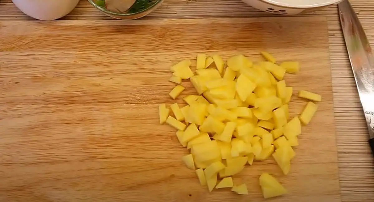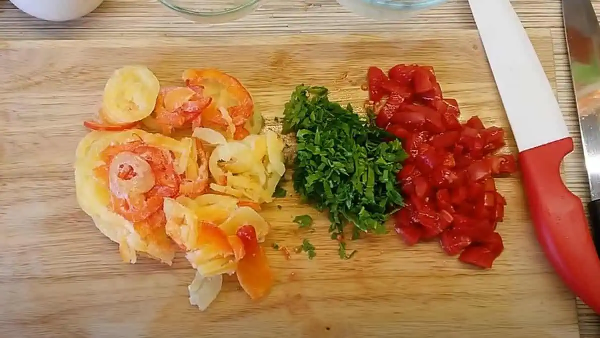 Potom ich ľubovoľne nakrájame: na pásiky, na kocky alebo mesiačiky. Vložíme ich do hrnca k ostatným surovinám a osolíme.