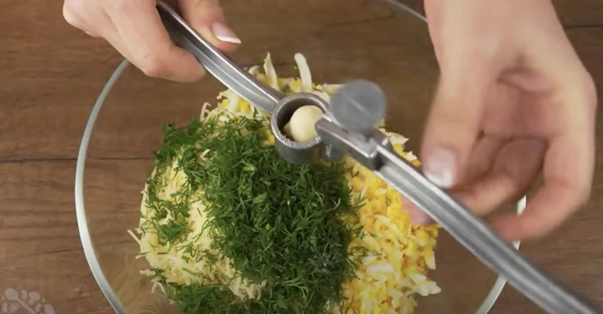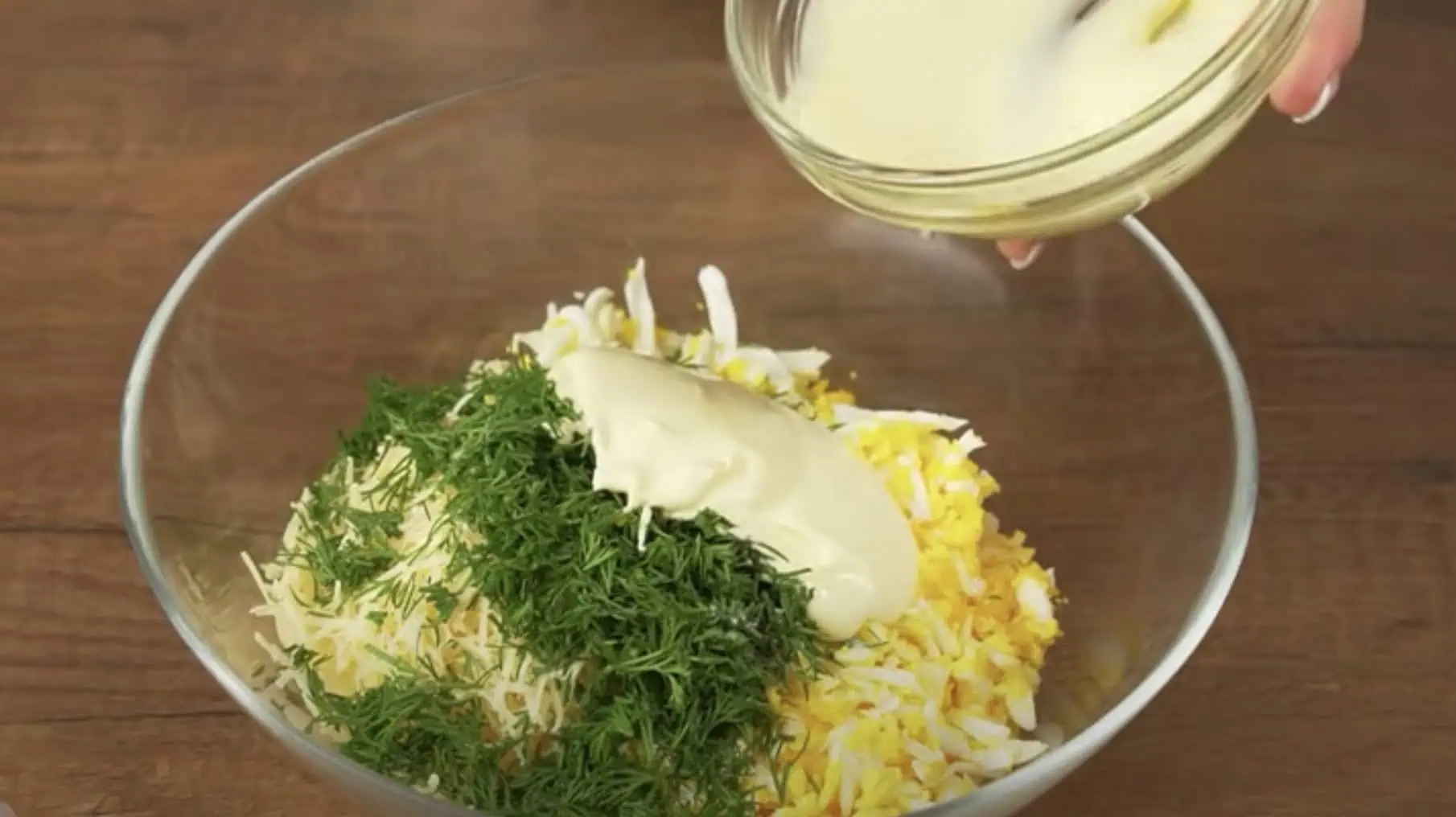 Vajcia nastrúhame alebo nakrájame nadrobno, pridáme syr.