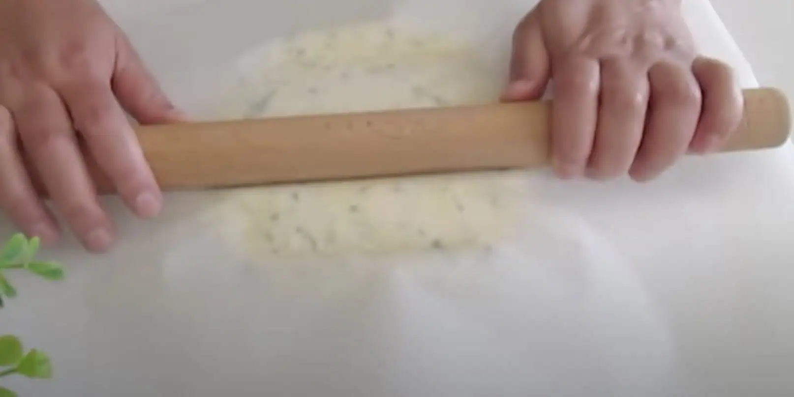Cesto preložíme medzi dva papiere na pečenie a rozvaľkáme.
