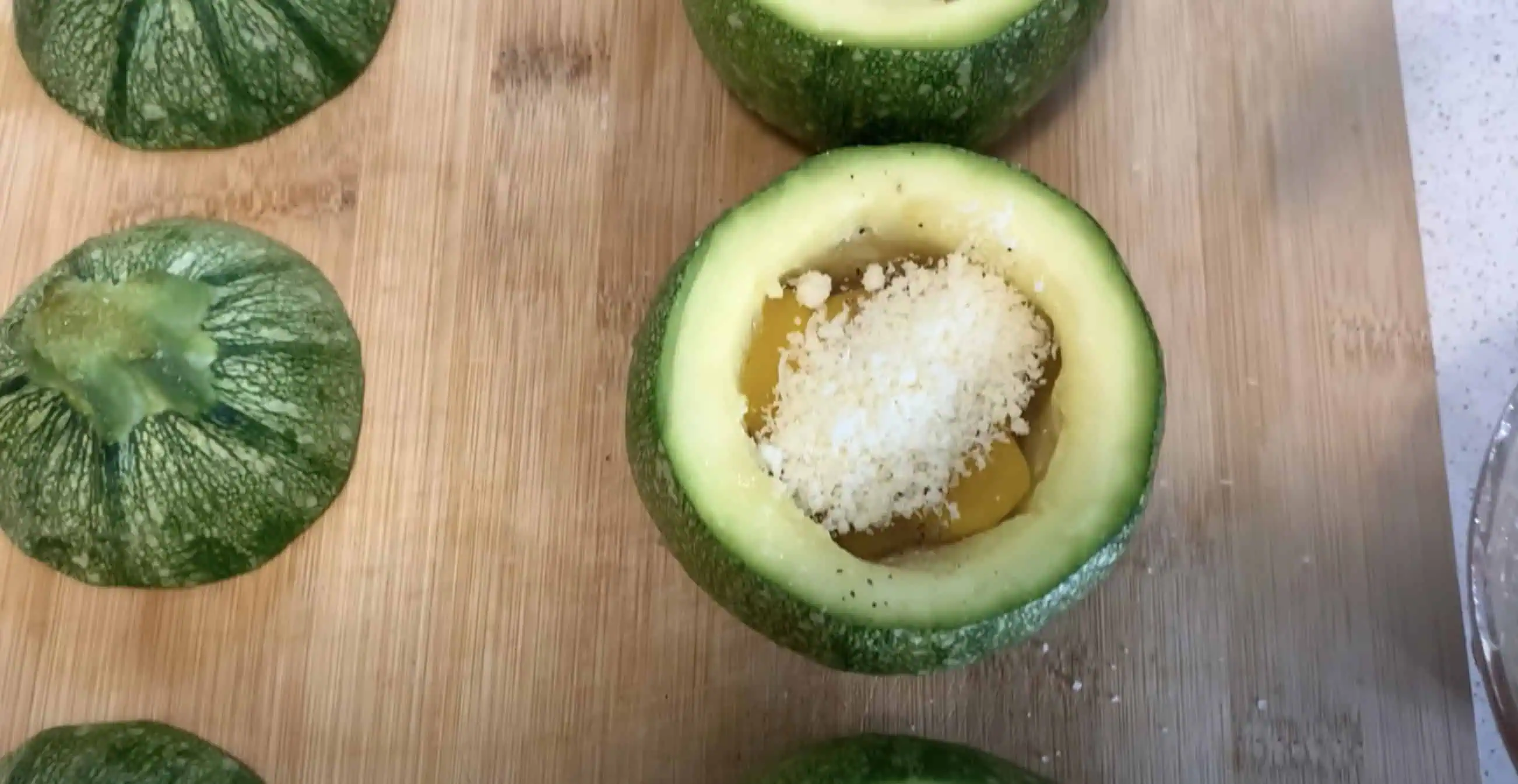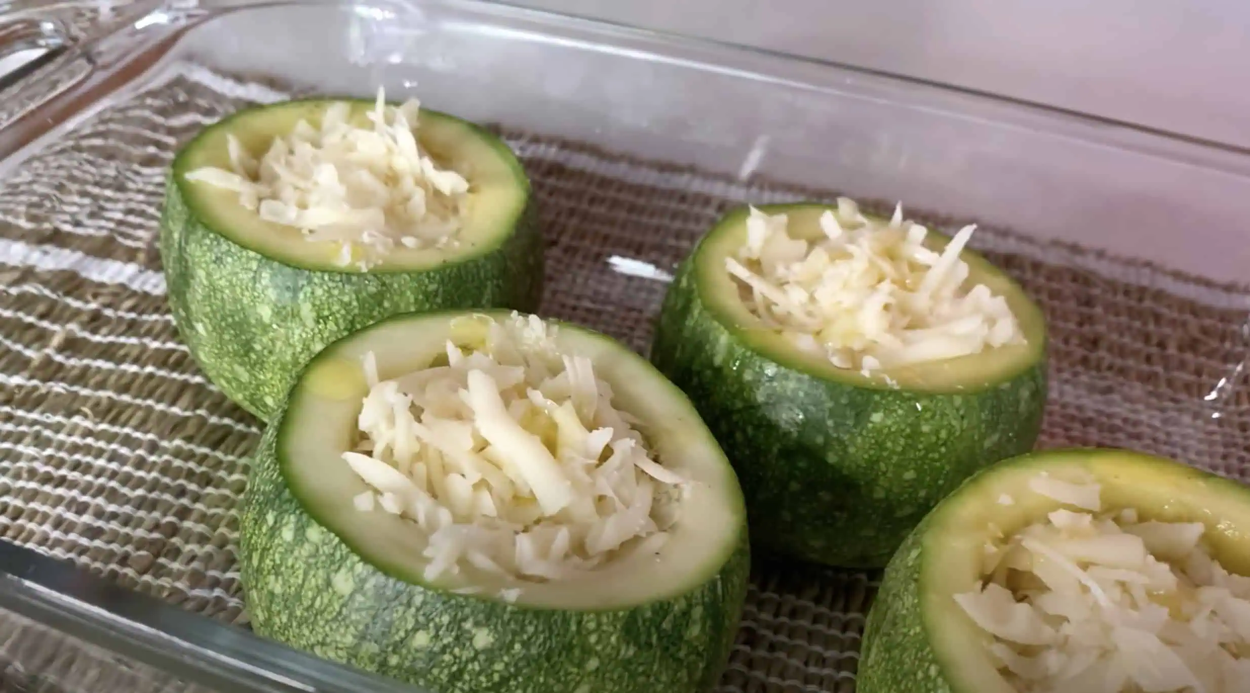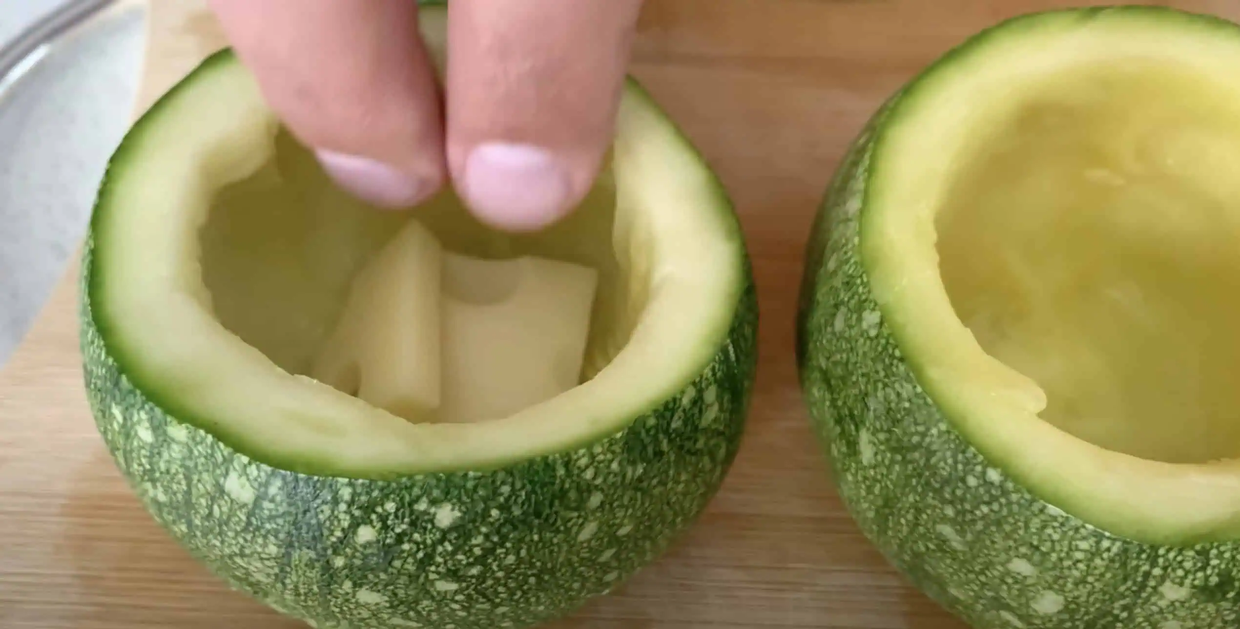 Do vnútra každej cukety vložíme kúsok syra.