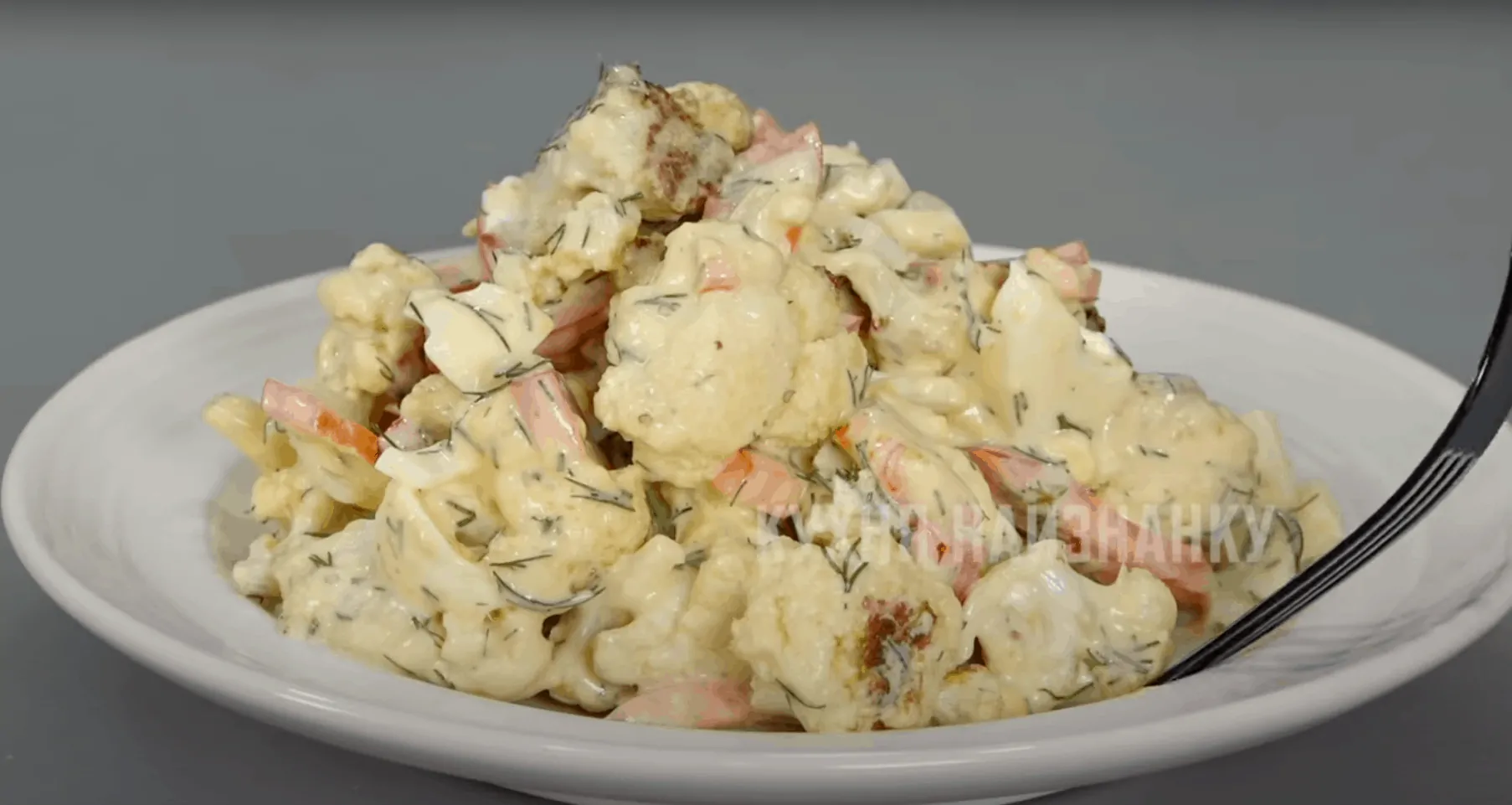 Karfiol rozdelíme na ružičky, umyjeme a dáme variť do slanej vody. Karfiol by mal byť mäkký. Karfiol prepláchneme studenou vodou. Čo sa týka domácej majonézy, tú pripravíme za 60-sekúnd. 2 žĺtky, 2 lyžičky horčice, 100 ml oleja rozmixujeme. pridáme soľ, korenie, pretlačený cesnak, jogurt a už len lyžičkou premiešame. Majonézu zmiešame s rozmixovaným, alebo popučeným karfiolom.
