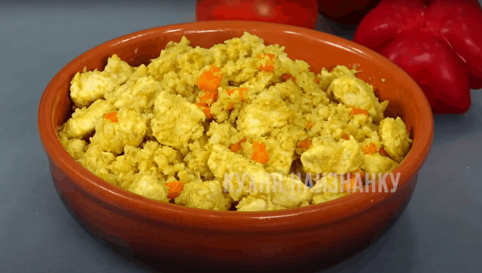 Keď je opečený, vyberieme ho a na tom istom oleji osmažíme nakrájanú cibuľu. Pridáme mrkvu nakrájanú na kocky a opekáme asi 2 – 3 minúty. Potom pridáme nakrájané kuracie prsia.